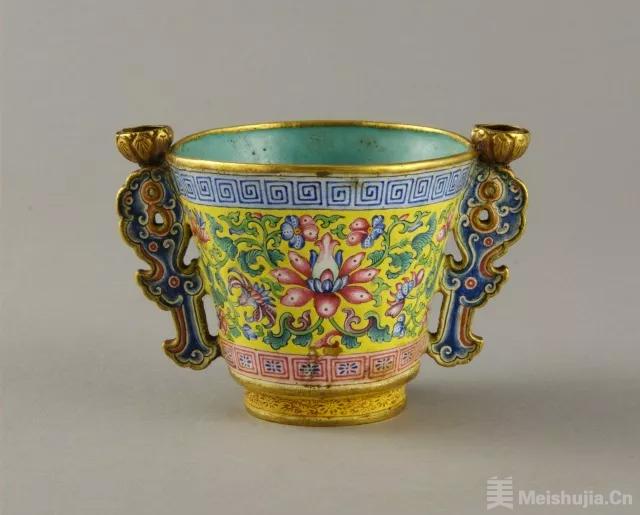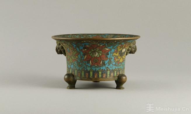 珐琅器起源于阿拉伯,又称佛郎、法蓝,是由中国隋唐时期的古西域地名拂菻(lǐn)音译而来。金属珐琅器是一种集金属制作与珐琅釉料加工处理为一体的复合性工艺制品,以华丽的色彩和寓意吉祥的纹饰受到人们喜爱。