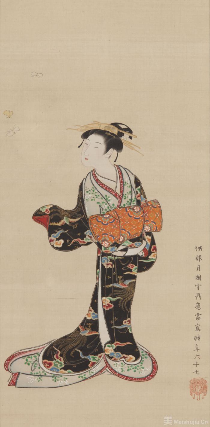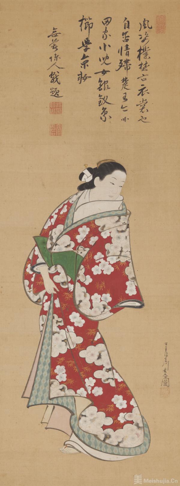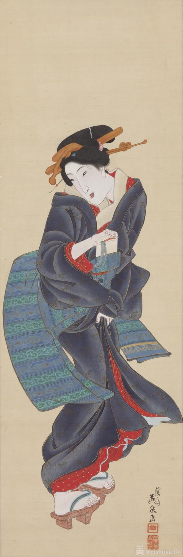 浮世绘在世间的一般印象都是色彩鲜艳的版画,但除了这类量产型的版画浮世绘以外,江户时代还有一种由绘师亲笔画在绢布或画纸上的肉笔浮世绘,每一幅都独一无二,非常珍贵。
