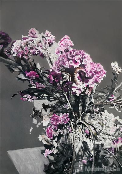 (4/11)△沈向红《鸡冠花-落寞》79×55cm