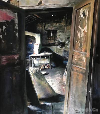 (7/11)△余其妹《古蜀地村民居》80×55cm