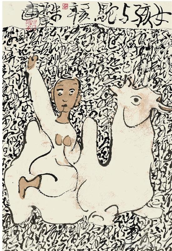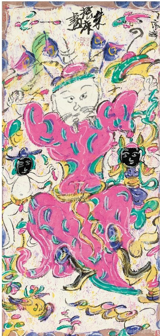 朱振庚手上的那支“笔”随时变换,就像是一个魔术师的魔棒一样,随时都能释放出一种完全出乎你意料的魔力,他对民间艺术的研究是吸收到骨子里的,他画这种带有浓厚民间气息的绘画时,能够把握得非常到位。但是他稍微转一下手上的笔,马上又能把西方的比如马蒂斯、毕加索他们线条里那种我们当时称之为比较洋气的东西融进来,朱先生能够用他这一支笔把“土”和“洋”连接起来,组成一种感觉,且在这两极当中游刃有余,跨度非常大。