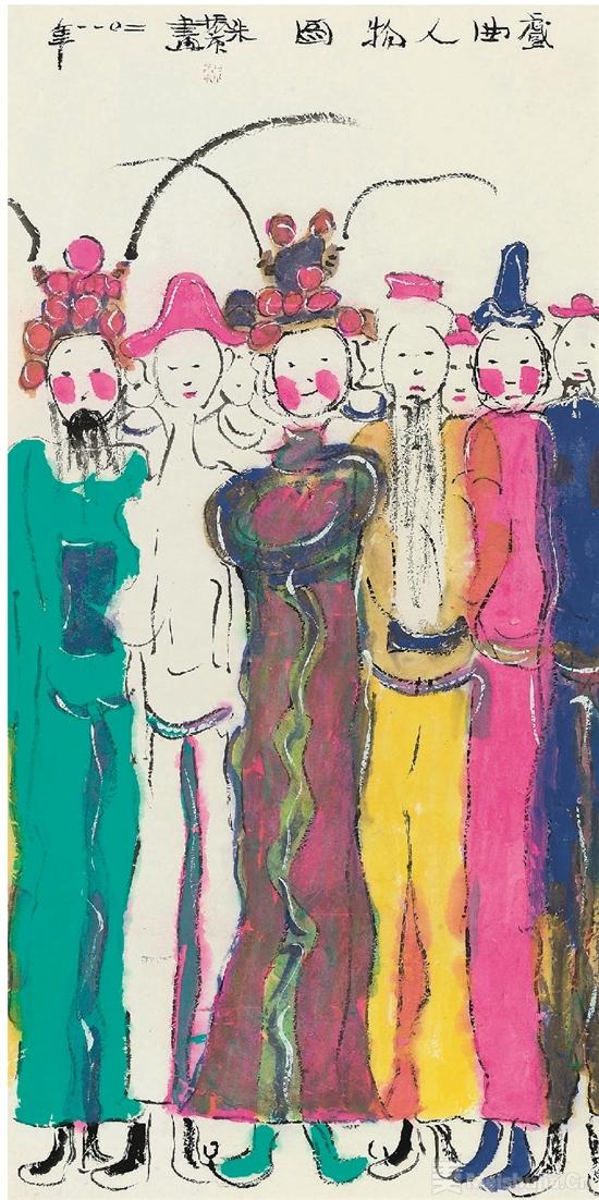 朱先生给我的这些鼓励,我十分珍视,也认为我们确实有相通之处。在那一阶段,我们都在从重彩中找到突破传统水墨的入口,而后也各自完成实验之后的蜕变。但其实在这之前,我对朱先生仰慕已久,早在90年代《江苏画刊》就曾推介过他,我是从刊物上了解到有这样一位在重彩画上探索的画家,且成绩斐然。虽因地域相隔,也因朱老师鲜于出入“名利场”,我与朱老师只有几面之缘,但从他的作品中,我一直将他视为我心中暗自学习的对象。他之后出版的许多画册,如速写集、彩墨作品集等,我也都悉数收入书架,细细品读。