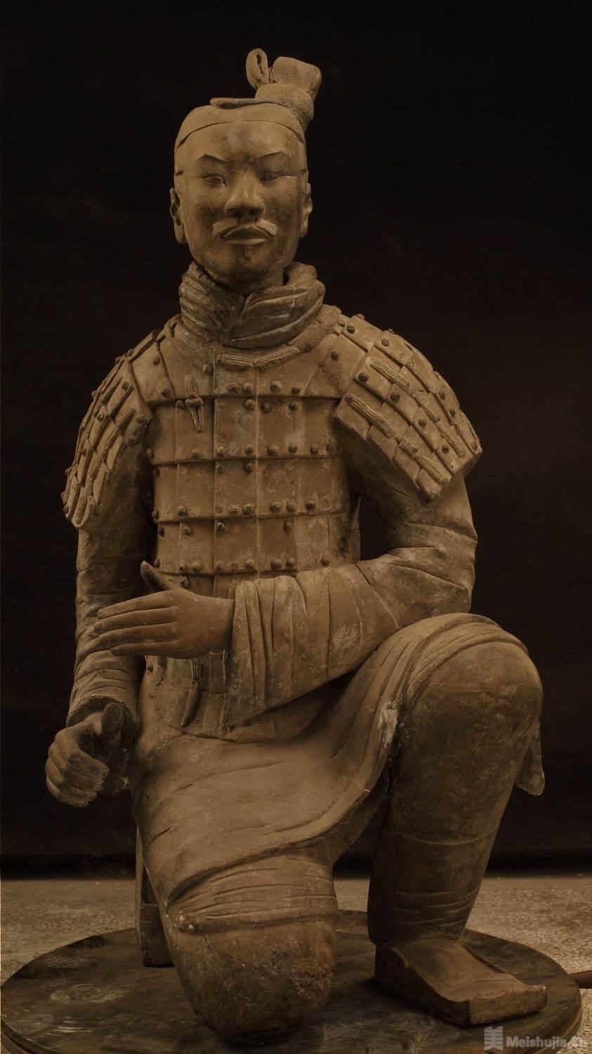 本次展出的兵马俑创日本史上最大规模,共陈列战国至汉代的兵马俑36件,其中秦始皇陵兵马俑10件,囊括将军俑、军吏俑、骑兵俑、跪射俑、马俑等类别。其他重要展品还包括茂陵鎏金青铜马、中滋青铜鼎、「王精」龟钮金印等。