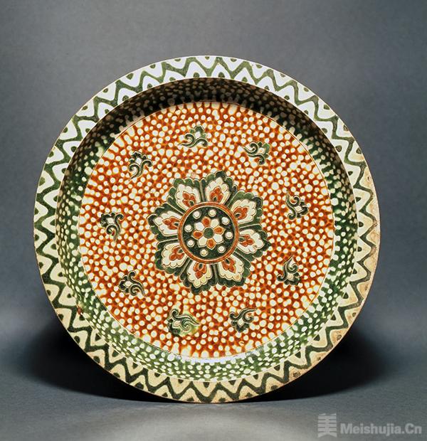 (3/3)唐三彩宝相花纹三足盘,唐代(7-8世纪)