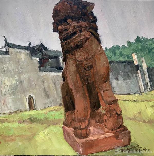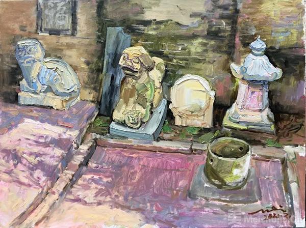 我知道,心浮气躁是当下社会的通病,只想着快速出名,一门心思走捷径而又不愿付出辛苦的人随处可见。而我则甘愿自我放逐,抱持画家应有的操守与本分,寂寞坚守,独自面对,拥入自然,神清气定,安安静静的在我的画布上慢慢画画。我深知自己画的很老实,很传统,甚至画的很笨。我不会熟练的套路,也没有伸手即来的熟练方法。在面对每一幅画时,都投注了我的真情实感,面对每一个场景时,都是对我一次从零开始的考验。每当看到那么多淳朴善良的目光在看着我一笔一笔的画画,听到他们以质朴的审美品评着我描绘他们家园的作品,间或品尝一下他们发自内心的善良而热情递过来的煎饼、粽子、鸡蛋、花生、地瓜、大葱、苹果、柿子等等,我的情感立马会连接着地气,我的内心顿感充盈踏实。我愿徜徉在这富有情感的世界里,脚踏实地,认真画画,用我的油画作品记录下我们这个时代的真实景象。我只是一个画画的人,没有资格自我标榜为人类思想和灵魂的导师,老老实实做人,踏踏实实画画是我的人生信条。我最关心的是能否画出一张自己满意的油画作品,会否在画中有一点点收获和体会。毕竟我的作品比起我的自然生命留存在世间要长许多。
