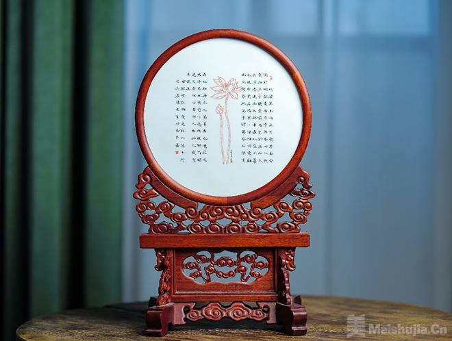 此次展出的作品,以扎实的书法功底,以及眼力、定力于细微之处见精妙。在一毫米的位置上进行书法的创作,一个指甲盖大小的位置书写150字以上的优美汉字,虽字小如草芥,然毫厘之间微中见大,颇具书法风度,行笔舒展流畅。将中国的古典文化再次升华,解决了以往在瓷器上无法进行大篇幅创作的难题。