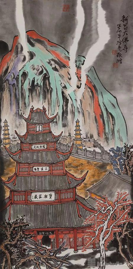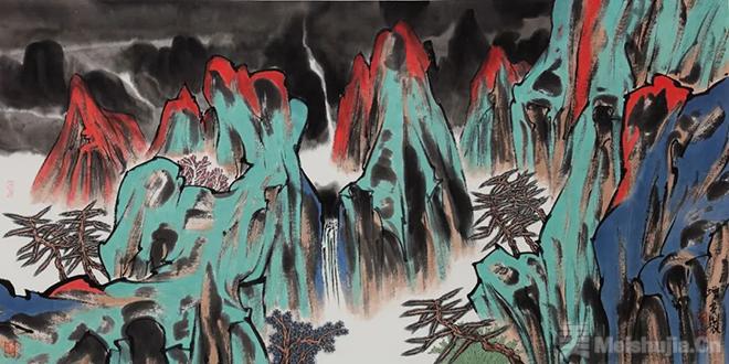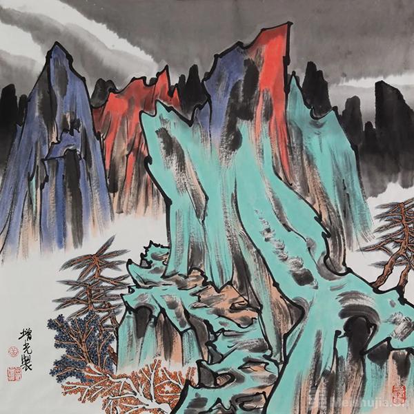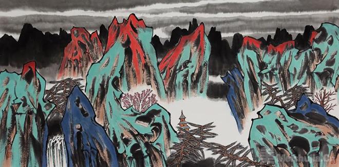 新昌是浙东唐诗之路的精华地,历代文人墨客对这片佳山佳水均有咏诵描绘。岳增光作为一名当代优秀画家,一年前曾应绍兴市美协的邀请来新昌采风写生,于是对这块浸润了晋唐遗风的土地有了深深的敬仰。岳先生在探索艺术精微的同时,对中国古代书画进行长期的研究和鉴藏,并取得了一些成就。他把传统与自己的水墨青绿创作相结合,既有古人旷远的意境和对青绿的钟情,又有现代绘画的明快亮丽,形成了独特的艺术风格。