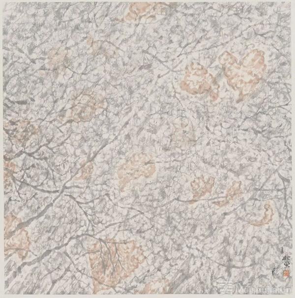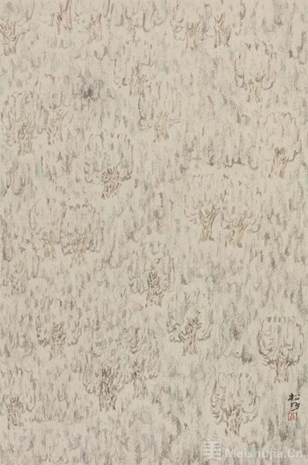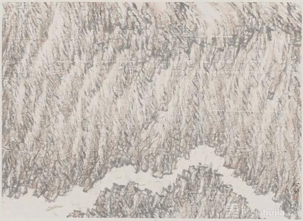 聂松“寻”茶,在味之正脉奇韵,否陈陈口感。明清山水,图式荫习,学者入毂而难脱;时人亦多浮墨之弊。聂松祛笔墨故则,钩沉以孜孜;又承姜公宝林之衣钵,于笔墨抽象性之形式,体味探索,笔下图式依“性”而不依“象”,似得要津。其画在惟恍惟惚间,融现代图式与传统笔墨于一体,象外求象,施性而图成,不计图之广狭,任笔而出,层层积匝,为之一新。