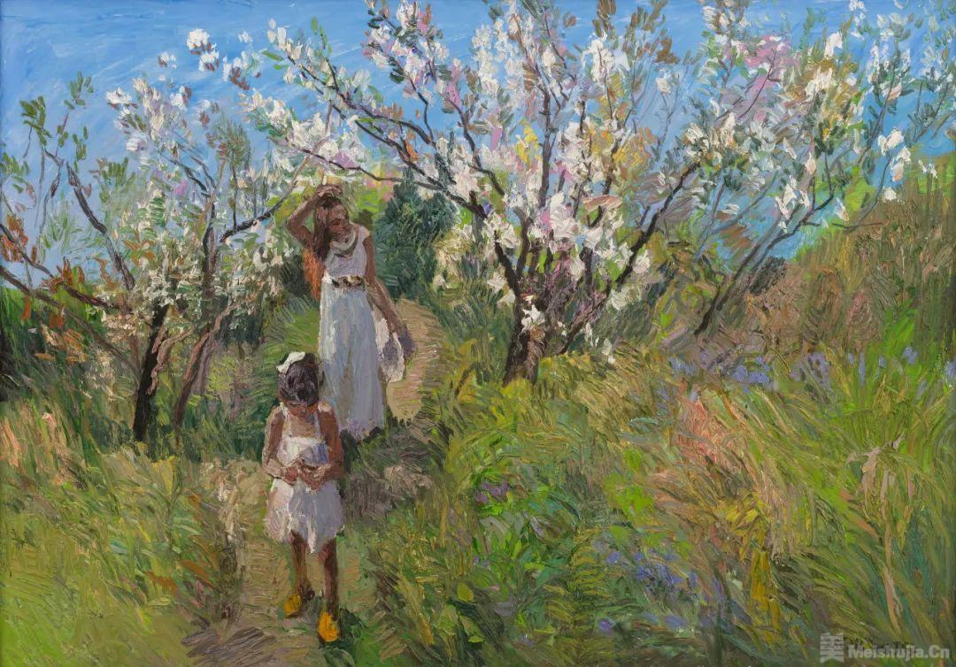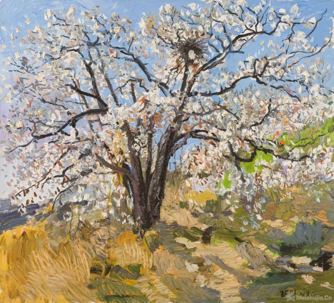 画有地域之风。东北油画在中国油画的格局中有着鲜明的地域特征,那就是表现性油画风格。作为东北表现性油画的代表画家,王建国早年即形成了表现性语言的追求:下笔恣意,充满感性;色彩强烈,诉诸直觉;肌理厚实,富有张力;光影斑驳,意态浑然。这些年,他在表现性语言的基础上进一步拓展,把“表现”和“写意”的结合作为研究课题。如果说“表现”是吸收西方现代绘画语言的话,“写意”则是朝向中国文化传统和东方感受方式的自觉,二者的结合在不少油画同仁那里已成为学术共识,体现出构建“写意油画”的路径。王建国在这方面的追求使他的作品呈现出悄然的新变,在取景布局上更加注重置身“现场”的整体感受,环视四方而取舍组合;在塑造形象时更加注重营造画面意境,下笔明确而气韵贯通。他善于一方面用刮刀厚涂重抹,任色彩在画面互补碰撞,一方面用中国毛笔勾画细节,使线条在空间穿插交织,两种笔法相辅相成,在视觉上形成强烈的张力。相比起前些年的作品,他的作品更具有一气呵成的内在韵律,把无意识的书写和刻画性的造型有机结合起来,形成“写意油画”的一家风格。