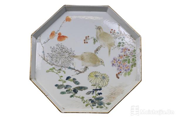 (4/6)景德镇窑粉彩安居图八方瓷盘,清代