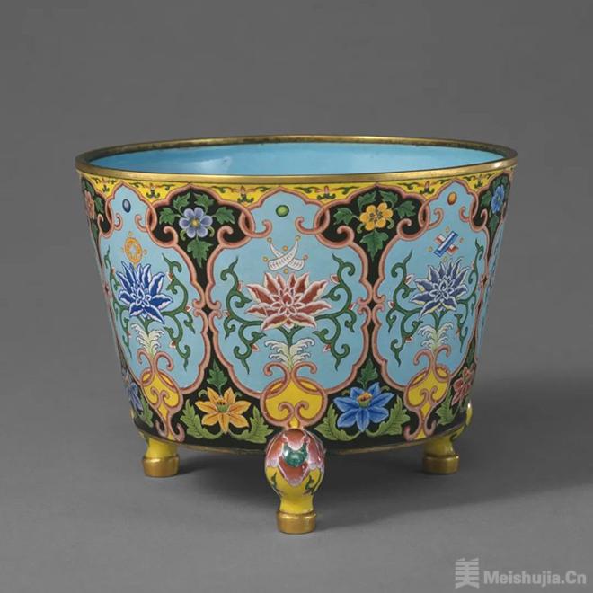 画珐琅工艺发源于法国,传入中国后,在康雍乾三朝得到长足发展。康熙朝宫廷工匠们成功研发了画珐琅技艺,雍正朝画珐琅器造型更加多元化,乾隆朝的画珐琅器装饰内容在继承传统的基础上,还融入西洋题材和透视画法,体现了东西方文化的交流。