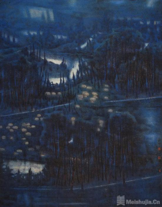 刘云内心里是有精神风景的。他把这风景一笔一笔不急不躁慢慢画下来,那澹澹的浅水,那斜斜的岸渚,那暮霭中的林梢,那山影里的弯月,他要画得美轮美奂,静谧深远,更要画得独出机杼,与众不同。他的乐趣就在这里,这乐趣是创造性的乐趣。他很享受。