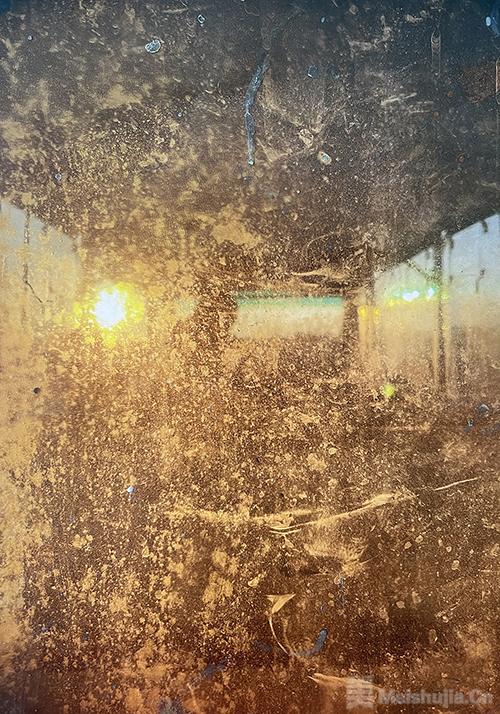 经验景观在每件作品中浮现、复制并回响。这些作品兼具摄影与绘画特质,将变化贯穿始终的“此地与彼方”关系具像化,直至某些已濒临消失的土地。《光蚀》模糊了媒介介质、艺术实践与母题之间的界限,通过图像呈现了卡马尔格地区日光与液态景观的沉积过程。交织古老与后现代叙事,这幅精神地图见证了艺术家转化并构想的一幅集合了当代与神话地质层的多重地貌全景图。人类基础设施的征兆或幽灵暗影,地域的扩张与封闭,有限的空间让无形的力量与能量浮现于地表。