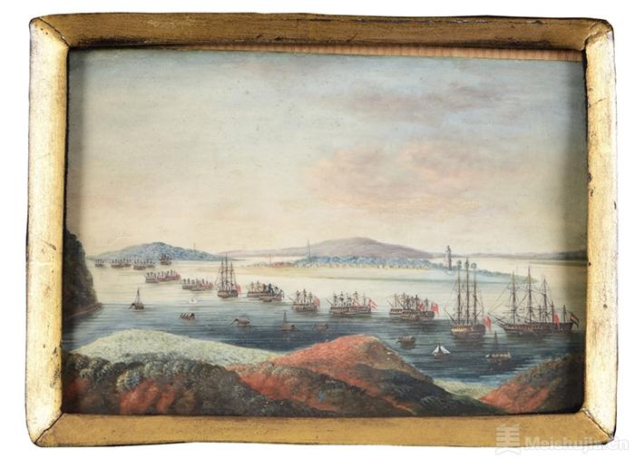 (2/6)象牙油画「黄埔港景色」图,清代