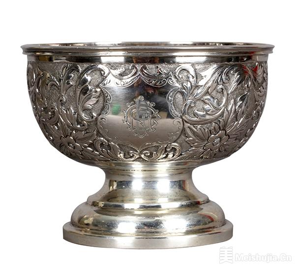 (5/6)银錾刻纹章花卉纹碗,清代