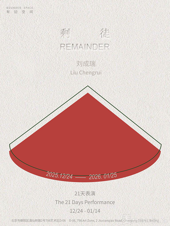有边空间BOUNDED SPACE荣幸宣布,将于12月24日呈现艺术家刘成瑞最新个展——剩徒。同时,艺术家将开启一场持续21天的表演项目。