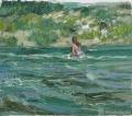 画有地域之风。东北油画在中国油画的格局中有着鲜明的地域特征,那就是表现性油画风格。作为东北表现性油画的代表画家,王建国早年即形成了表现性语言的追求:下笔恣意,充满感性;色彩强烈,诉诸直觉;肌理厚实,富有张力;光影斑驳,意态浑然。这些年,他在表现性语言的基础上进一步拓展,把“表现”和“写意”的结合作为研究课题。如果说“表现”是吸收西方现代绘画语言的话,“写意”则是朝向中国文化传统和东方感受方式的自觉,二者的结合在不少油画同仁那里已成为学术共识,体现出构建“写意油画”的路径。王建国在这方面的追求使他的作品呈现出悄然的新变,在取景布局上更加注重置身“现场”的整体感受,环视四方而取舍组合;在塑造形象时更加注重营造画面意境,下笔明确而气韵贯通。他善于一方面用刮刀厚涂重抹,任色彩在画面互补碰撞,一方面用中国毛笔勾画细节,使线条在空间穿插交织,两种笔法相辅相成,在视觉上形成强烈的张力。相比起前些年的作品,他的作品更具有一气呵成的内在韵律,把无意识的书写和刻画性的造型有机结合起来,形成“写意油画”的一家风格。