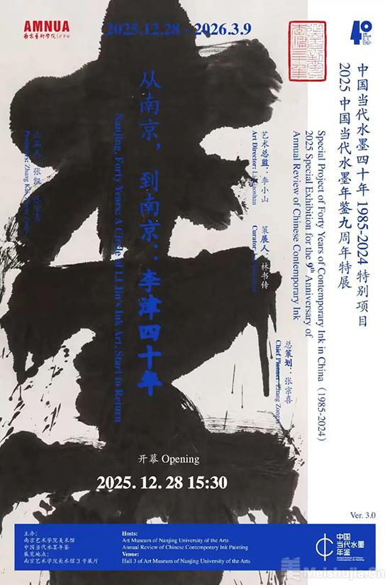 因此,我们的展览想有意的回避作品,而去直面艺术家的个人状态。李津不是从水墨的高处俯视现实的人,因为艺术家已经将中国水墨的当代处境写在了生活里。1985年李津在南京艺术学院短暂进修三个月,时间很短,却足以建立一套长期可互勉的朋友圈,也让一个北方的艺术家在气息上接洽到了江南的婉约与修辞。四十年后回到南京,“从南京,到南京”形成一种地域的回环,不怀旧,却像一把时间的标尺,将四十年里关于自己的坚持与改变都写在了展览里。展览中,我们把李津的个人年表放进了大时代里,把年表文献置于展览空间的中心,希望观众先进入时间与条件,再进入风格与评价;作品在这里以“作品文献”的方式出现,每一件作品既承担作品的观看,也承担证据的责任。