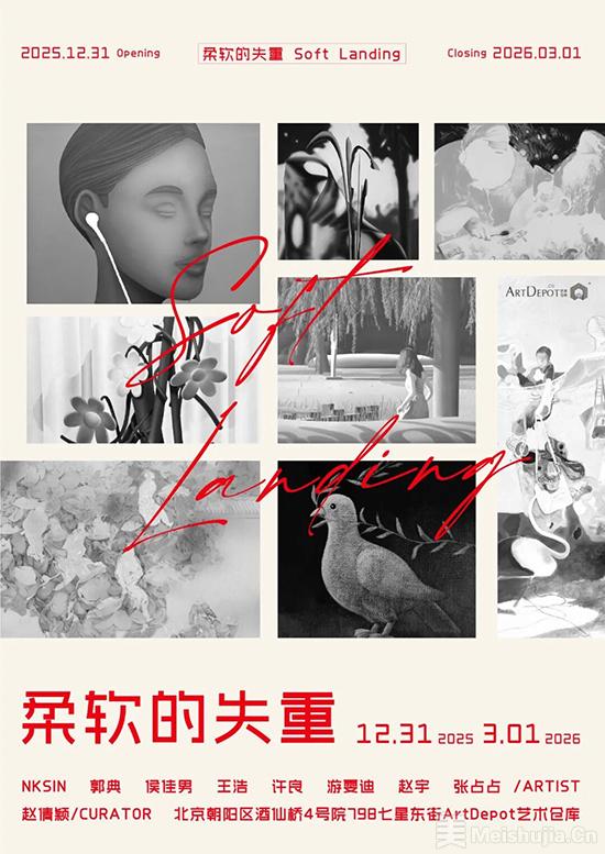 ArtDepot艺术仓库欣然宣布,将于2025年12月31日至2026年3月1日在北京798艺术区空间呈现群展《柔软的失重》,呈现NKSIN、郭典、侯佳男、王浩、许良、游雯迪、赵宇、张占占的精选架上作品。(*以艺术家姓氏首字母排序)