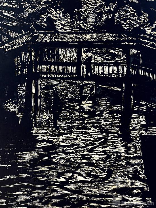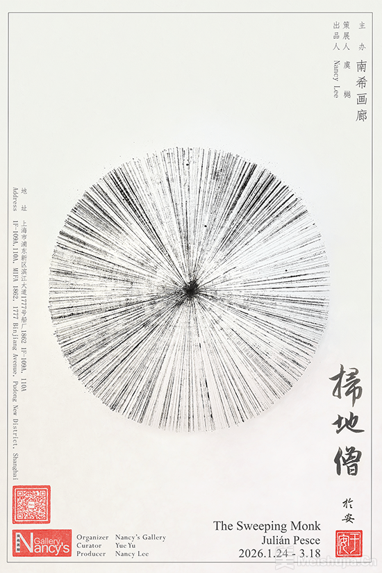 此次展览是阿根廷艺术家于安(Julián Pesce)倾听并吸收中国文化元素的成果。他通过两种源自原始书写和绘画的行为进行创作:雕刻(在材料上刻痕)和用不同负载的工具(毛笔、木棍和扫帚)蘸墨。