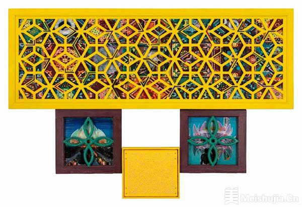 然而,李青也深知,这一切都离不开历史……“当代”与历史之间的张力,正是我们理解并应对这个不断变异的世界的关键。因此,他引入了诸如从拆毁的建筑(包括“农家钉子户”)中收集来的旧窗框等“历史遗迹”,使其成为他绘画的骨架,即建筑框架,进而将其延伸至他的装置作品中,这些装置作品往往也成为了“建筑”。反过来,这些“建筑创作”的尝试也让他的绘画作品趋于“建筑化”。如今,这些作品被重新构建,框架交叠,不同的场景和图像相互重叠,形成由互不相连的元素——建筑图像、人物形象……组成的拼贴。然而,经过“社交媒体”的过滤,它们不再是现实世界的图像;相反,它们成为了艺术家受雅克·拉康理论启发所认定的“他者的欲望”的符号。[1]