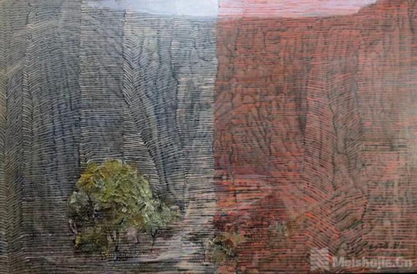 第五空间:郝强。 记忆的沉积。他让沉积获得历史的厚度,让个人时间与文化记忆在画布上交汇。