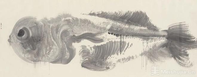 当周京新先生笔下的大鱼,从宣纸的方寸之间跃然而出,以丈二巨幅的磅礡气势呈现于观者眼前,我们所面对的,已非寻常意义上的花鸟画题材,而是一位当代水墨大家历经数十年探索后,于笔墨本体深处开凿出的一脉清潭。