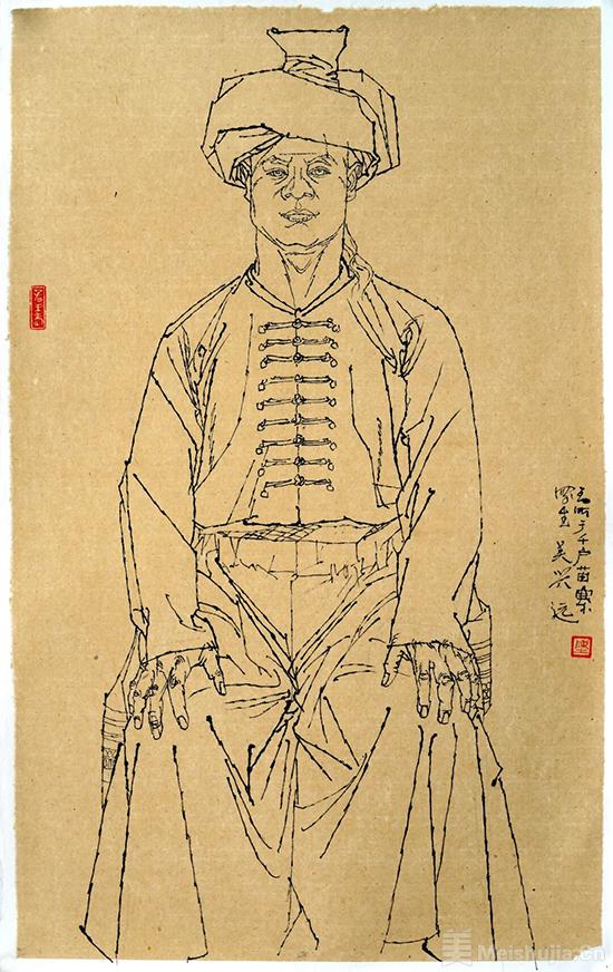 线描画是中国画的重要门类。陈孟昕的线描人物作品以严谨的造型和精妙的线条著称。此次线描写生研究展,主要呈现陈孟昕的写生作品,线条流畅自然、轻重缓急把握有度,人物神态逼真、衣饰疏密和谐,使得画面更添几分写生的现场氛围,极具视觉张力。