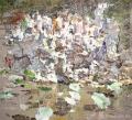 面对纷繁的当代世界,张淳大宝能够秉持澄怀的状态,以纯粹的心理对待复杂的物象,将所见之物纳入视觉之思。在某种程度上,他的视觉燃点是比较低的,在富有动感的物象面前,他涌发的表现激情披图可见,直接性的痕迹十分清晰,也正是这种以感性驱使的动机,使他在不同作品中都能构建出独特的意象,或者说在他的经验中,意象生成的方式随机而发,在人物作品中表现为影像绰约,人与环境交融辉映;在大量的风景题材中,更是以“散点透视”自由经营画面,直取风景的意境表达。他典型的语言特征是表现性、写意性的色彩与用笔,他有优秀的色彩秉赋,以色彩造型是他的长项。通过书写性的用笔,他将色彩语言发挥得淋漓尽致,以笔线和团块构筑成画面上闪烁的光斑,使画面拥有起伏呼吸,形成光与彩的交响。在一些大尺幅作品中,他整体把控画面的能力十分明显,将线与面、笔意与造型、色彩与肌理交织成各种意象,为中国油画吸收融合传统绘画的写意精神作出了可贵的探索。