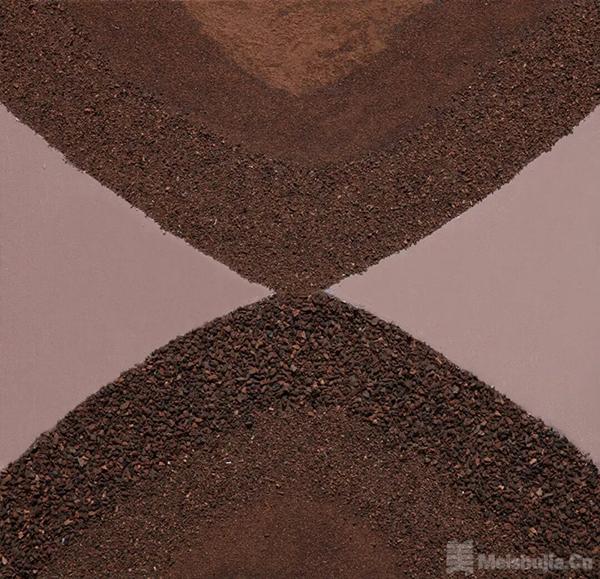这批作品所呈现的,是材料的“物性”在重新获得尊严之后能够抵达的意义深度。那些赭色的颗粒,疏密之间自有节律,浓淡之中潜藏温度,构成的肌理从不趋向装饰,而始终指向一种更为根本的自然物属性——生长、消散、沉积、残留。观看这些作品,你可能首先感知到的是一种触觉性的亲近,那是植物与土地的气息,是时间作用于有机物质后留下的痕迹——这种感知先于任何观念解读而存在。