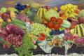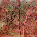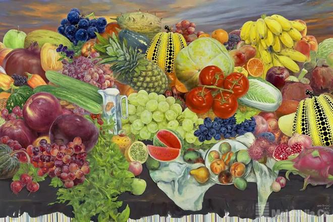“花·果·山”在此,已然彻底褪去了其脍炙人口的神话叙事表层与集体想象的外衣,内化为一种独特的艺术创作方法论与一种深邃精神结构的双重隐喻。它首先指向一种丰盈而有序、层叠而交织的动态平衡的认知层次与价值序列:如花般精微、敏感、瞬息万变却直指存在核心的感性触须与初觉;如果实般饱满、沉重、凝聚着时间能量以及社会欲望与物质密度的实体性存在;如山峦般稳固、苍茫、浑厚,提供精神仰止、心灵归依与超越视野的永恒架构。
