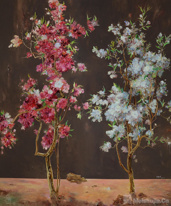 王朝刚的此次个展,远非三个创作主题或系列作品的简单罗列与物理性陈列,而是一次精心编排的充满内在韵律语调与哲学暗示的视觉叙事,一次从微观生命的深邃凝视与存在叩问(花),穿越物质景观、现世隐喻与文明悖论的沉思长廊(果),最终抵达浩瀚精神境域、心象彼岸与宁静归宿(山)的完整的螺旋上升且具有启示性的精神旅程。