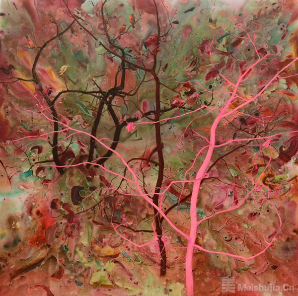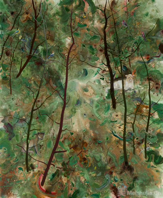 这座园林在意象的地平线上悄然浮现,它并非《西游记》中那个猴王啸聚、充满野性狂欢,以及集体喧嚣与原始生命冲动的神话乐园,而是一位当代画家以数十年心力为坚韧椽笔,以画布为默然承受与积极响应的净土,在时光近乎无声却势不可挡的流淌中,徐徐构建、反复修葺和不断拓展的可供精神栖居、漫游、沉潜与自我孵化的内向山水。