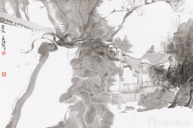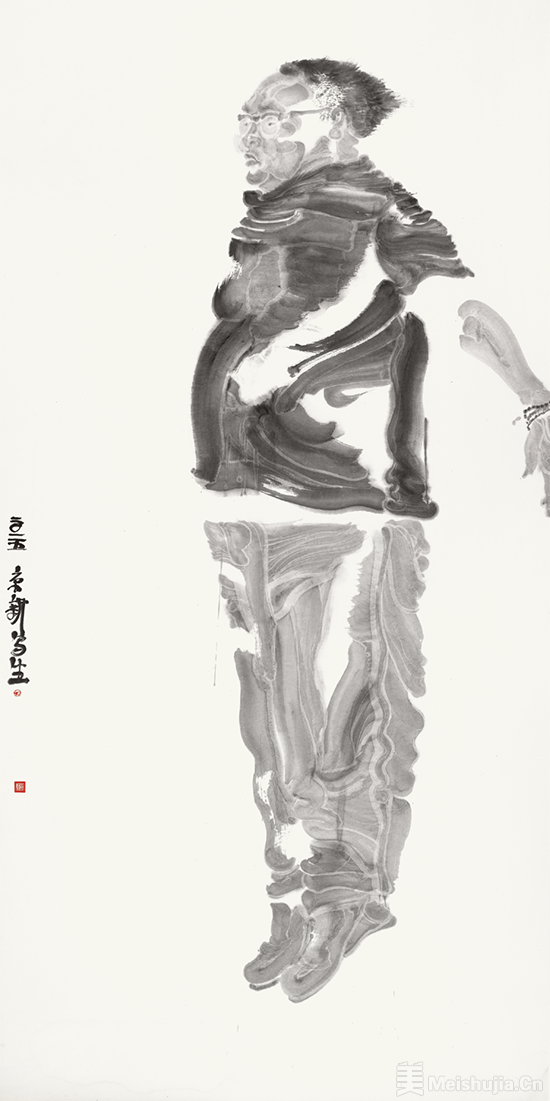 周京新的艺术起步于对传统的研习,成熟于对范式的突破。他提出的“水墨雕塑”理念,把雕塑的量感与体块意识引入水墨,用笔保留书法的书写性与节奏感,借助积墨、破墨塑造出沉厚而虚实的物象体量。他舍弃了传统皴法与描法,却坚守了中国画纯正的气韵,真正实现了“用中国画的笔墨,画出雕塑的感觉”。人物画始终是他的创作核心。笔下的市井众生与戏曲人物,摒弃工笔细描的繁复,也远离写意程式的套路,以凝练的笔墨直抵人物的结构与神采,在似与不似之间达成形神兼备。山水不求奇峭,花鸟不事纤巧,他以沉着的笔墨构建浑厚的视觉结构,将题材“语言化”,让物象成为笔墨自我呈现的载体,赋予作品超越具象的审美价值。周京新执教南京艺术学院,深耕教坛培育大批优秀学子,既坚守水墨文脉传承,又践行社会美育使命,彰显艺术教育的责任与担当。作为当代水墨的领军者,周京新不仅成就了个人的艺术高度,更为中国画的当代转型开辟了一条立足传统、面向未来的通道。