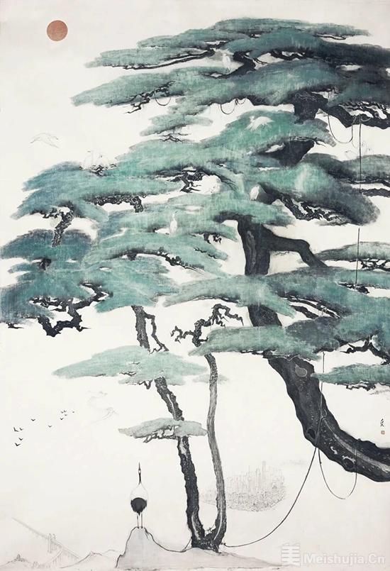 (4/5)《旭日东升》238×170cm 绢本设色 2025