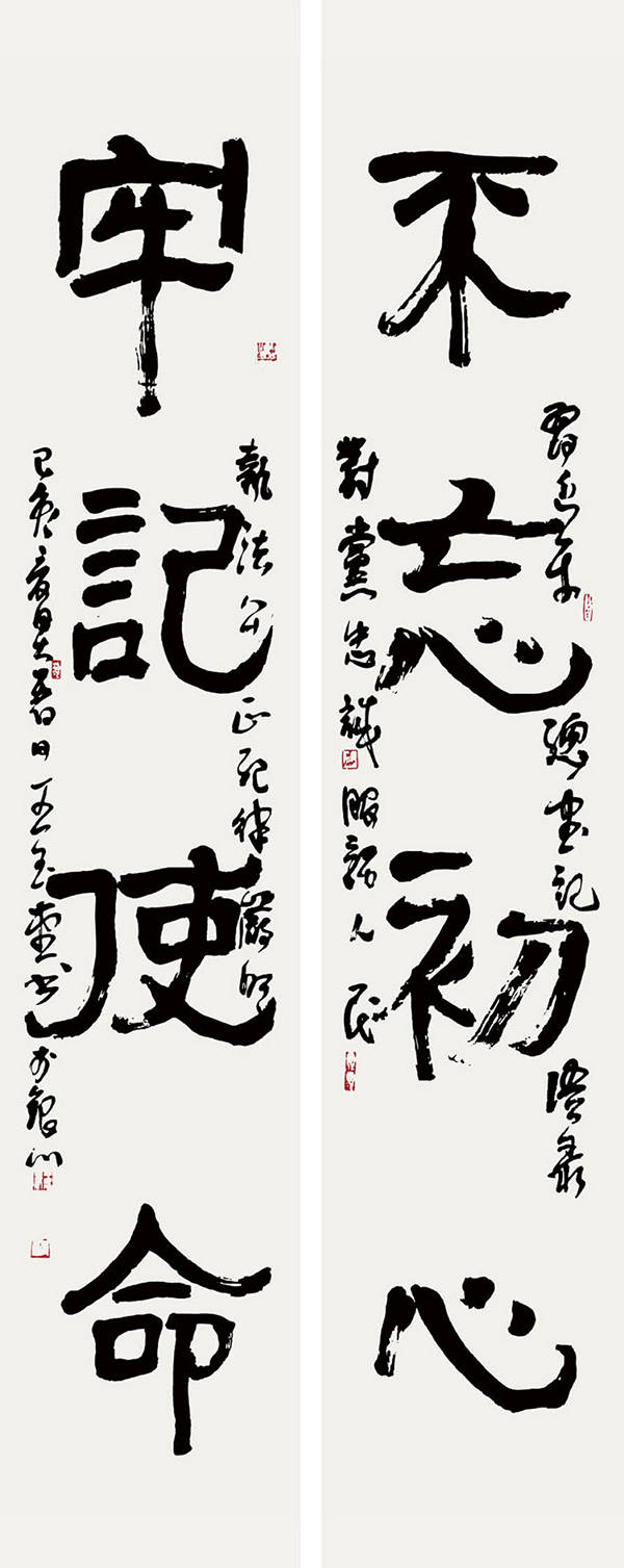 《不忘初心 牢记使命》180cm×49cm×2 2019年