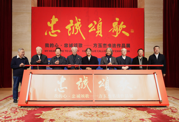 为了歌唱祖国、讴歌新时代、礼赞警察英雄,喜迎乙巳新年,喜迎第五个中国人民警察节,用书法艺术颂扬人民警察忠诚奉献精神,致敬警嫂警属,展示警营艺术风采,2024年12月28日上午,由公安部新闻传媒中心指导,中国民族文化艺术基金会、全国公安书法家协会、首都师范大学中国书法文化研究院联合主办的“我的心•忠诚颂歌——方玉杰书法作品展”在北京中国美术馆隆重开幕,展览由中央电视台主持人张泽群主持。