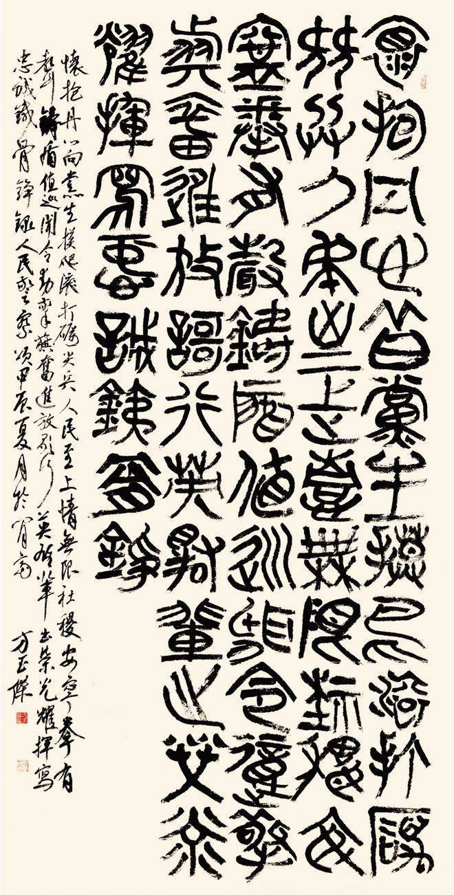 拳拳深情、承传书典五个部分,是方玉杰用近四年时间潜心研究,以公安文化经典资料为主要内容,用书法艺术形式呈现,讴歌祖国、弘扬人民警察的牺牲奉献。展览作品,书体不同,形式多样,有鸿篇巨制,有尺牍书札,有的庄重凝炼,有的酣畅淋漓,有的静穆典雅,不仅展现了方玉杰近一时期的书法艺术水平,也反映了他对公安工作和公安书法艺术的挚情大爱。“文以载道,以书焕采,公安利国,可贺可嘉。”在他的笔下,每个字符都是鲜活的生命体,仿佛都在诉说着传奇故事。在笔墨间,他找到了与家国相连的纽带,通过书写公安文化,让更多人感受到警察的温暖与力量,感受到社会的正义与光明。他以笔墨书写忠诚,以文字传递情怀,以实际行动诠释了“书为心画,书为时用”的真谛。