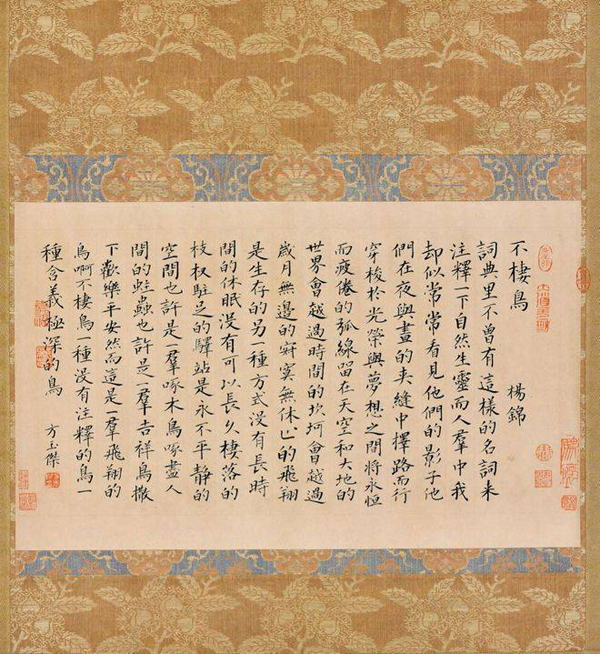 展览开幕式上,方玉杰声情并茂地讲述了为此次展览创作的主题曲《你看着我的眼》,歌曲是方玉杰结合自己数十年的学书感悟创作的一首歌词,邀请张艺谋导演音乐团队程池先生编曲、歌唱家彭沛、刘雅进、杨子乐分别通过通俗、民族、美声三种曲风演唱。作为本次展览的主题曲,别出心裁,歌曲儒雅的古风气息,好似涓涓流水,娓娓道来,清新淡雅,润物无声,宛如水墨在绢素上晕染,其中歌词写道“月明灯暗,雨行冰散,变化释怀绢素染”,完全是书者方玉杰在夜深人静时与书法的情感交融,他奋笔疾书,挚爱笔墨,讴歌时代,令人动容。