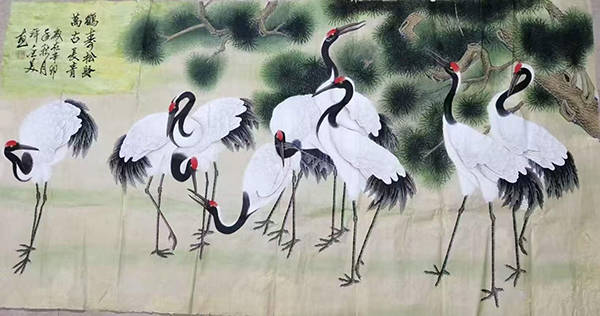 工笔画:鹤寿松龄,万古长青150cmx70cm(孤品)在国内外书画报刊发表12次