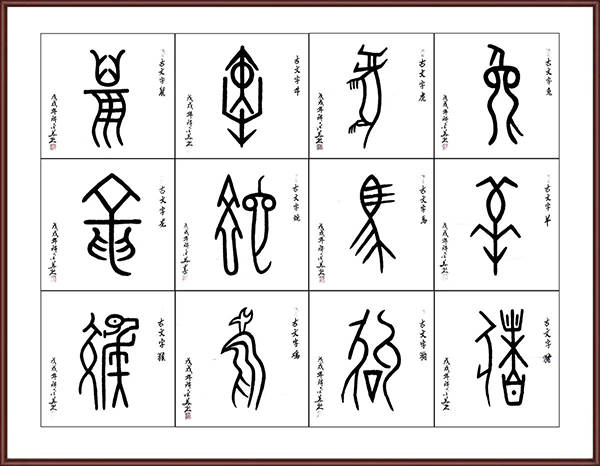 古文字:十二生肖69x68X12cm(孤品)。 古文字:十二生肖69x68X12cm(孤品)