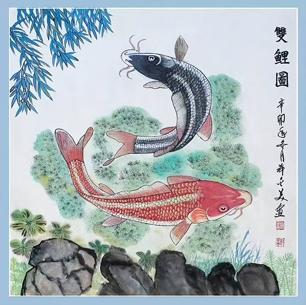国画:双鲤图69X68cm(孤品)