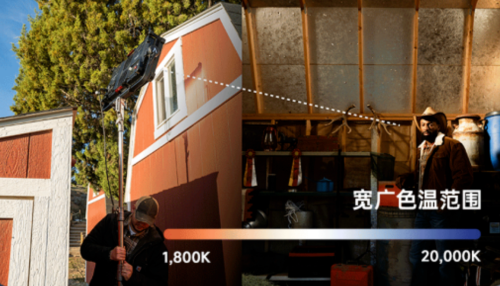 灯具支持1800K-20000K超宽色温调节、具备基于ASC MITC标准的100%绿/品红(±G)全范围调校能力,并可覆盖90% Rec.2020色域,可以在任何复杂光环境下都能输出精准、纯净的电影级色彩。
