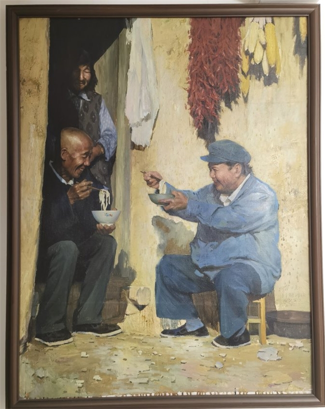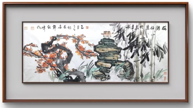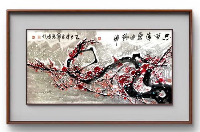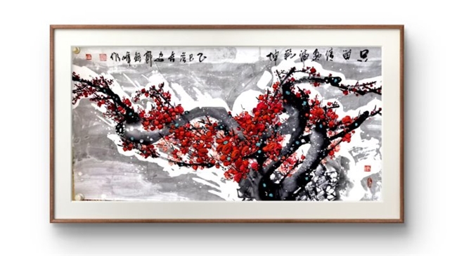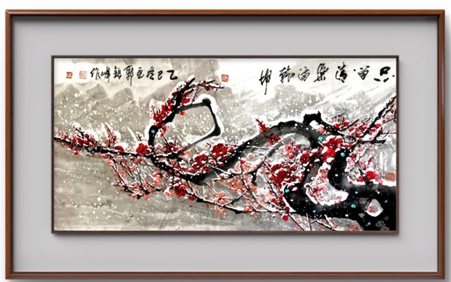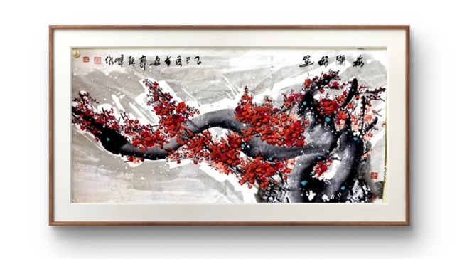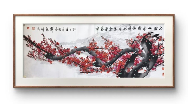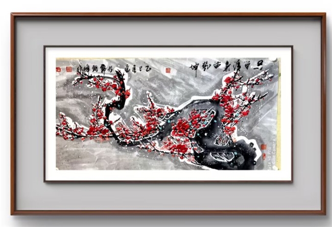 他书画兼修,中西相融,于油画、国画皆臻化境。笔下黄河奔涌咆哮,尽展中华民族百折不挠的精神风骨;寒梅傲雪凌霜,尽显君子坚贞不屈的浩然气节;人物百态鲜活生动,藏着对人间烟火的深切体察与时代温情。笔墨间既有军旅生涯淬炼出的雄浑刚健,亦有文人翰墨沉淀下的清雅灵韵,刚柔相济,开合有度,不泥古法,不逐时俗,将对山河的礼赞、对家国的热爱、对时代的感悟,尽数凝于笔端,自成一派雄浑大气、意蕴深远的艺术风貌。
