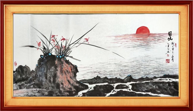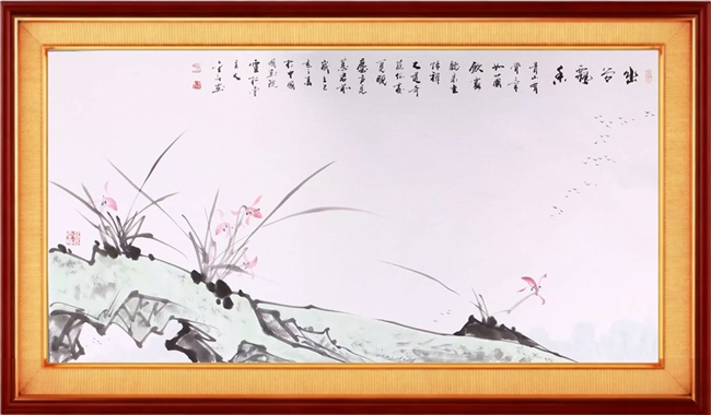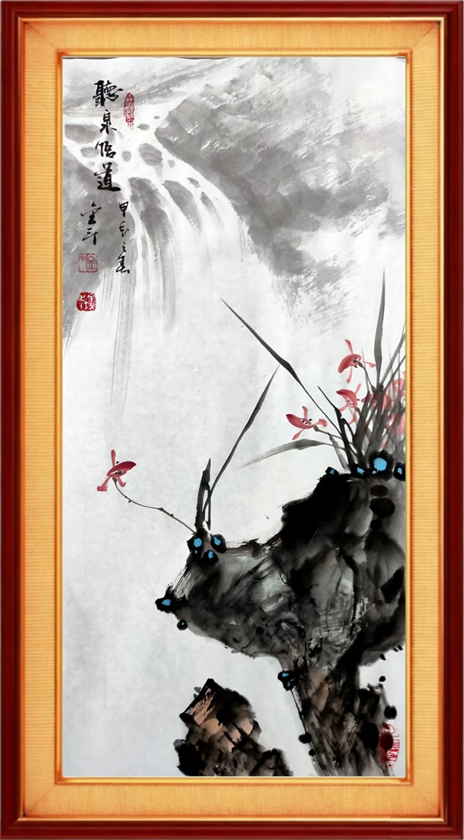 “至简、精爽、精准” 为创作圭臬,彻底打破了传统兰花题材仅作为案头清供的小品局限,将兰草的君子风骨与山水的天地气象深度相融,开创了独树一帜的