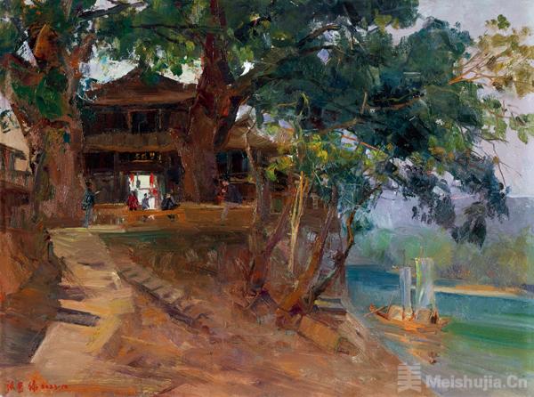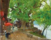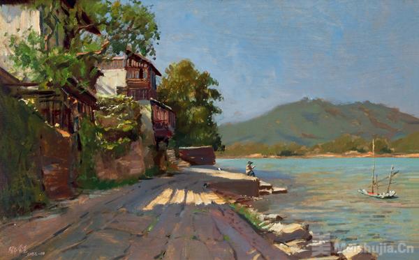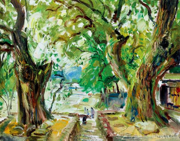 今年5月,何红舟跟随中国美术家协会油画艺委会来到古堰画乡写生,对这里留下了很深的印象,他画下了矗立于大港头的一棵大樟树。他说:“大樟树有历史的沉淀,以及树旁边老街都给我留下非常深的印象,我希望通过画笔来描绘山水之美,讲述人文故事之美。丽水的自然风光本身就很吸引人,也有利于油画的抒情表现,它与中国传统山水画之间也会产生一种直接的联系——“师造化”时的意境之美。当我们面对中国的自然山水时,很容易把心里那种对于中国传统人文精神的理解和认识勾连起来,再结合个人的探索实践,使得风景油画有了很好的推进,为展现中国意蕴的油画给提供良好的土壤。”