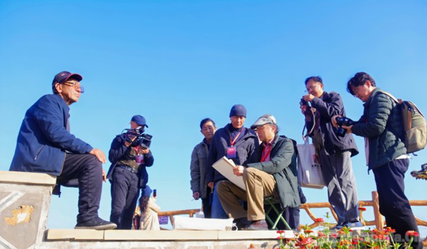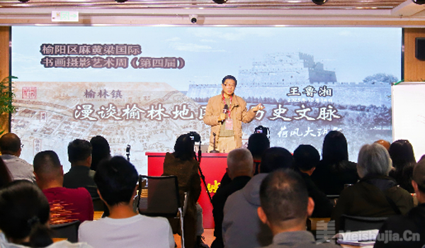 10月14日著名学者王鲁湘在榆阳区城市书房开展专题讲座, 深入探讨了陕北黄土文化、民俗符号在当代书画摄影创作中的学术价值和表达创新;采风活动中,艺术家们以麻黄梁的沟壑纵横、黄土地貌为画布,用笔墨与镜头定格榆阳之美。