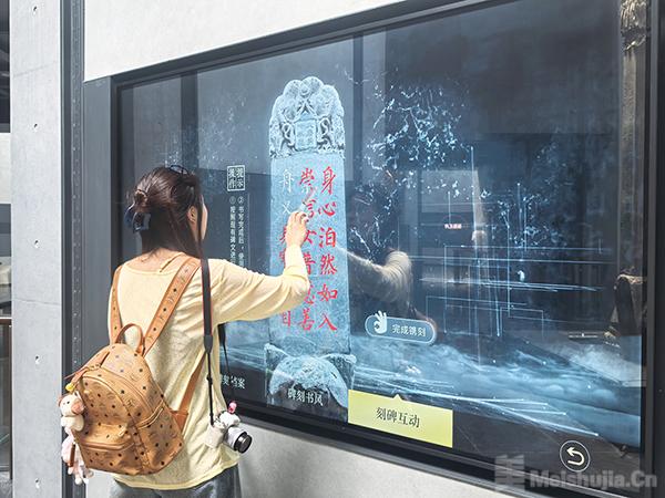 游客在互动屏幕上进行“碑文镌刻”