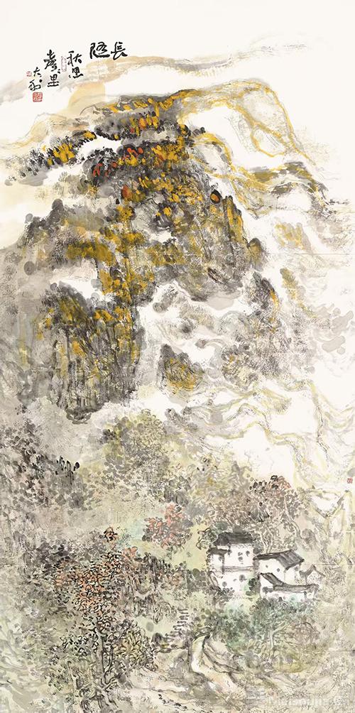 在程大利先生的山水语境里,我们感受到了范宽笔墨点式与黄宾虹点状笔墨结构的延伸,从学理上传承出新、多源同归,在实践上探究寻根、刚健自强,呈现了其创造的笔墨语言,以千万笔绘成团块山水,图式更加清晰可感。