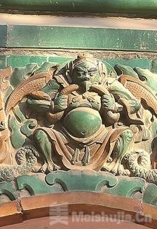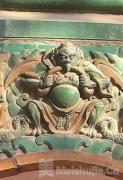 记者看到,琉璃阁以黄绿为主色调,有二层,上层为重檐歇山顶,上下层皆为绿琉璃瓦顶。资料显示,琉璃阁立面上镶嵌着1424尊无量寿佛琉璃像,是全国少见的清代官式琉璃建筑。院落中的七佛塔亭内,八角石塔上刻着七世佛和乾隆御笔所书《七佛塔碑记》,全国仅此一例,展现了中国古代建筑的高超技艺与工程智慧。记者注意到,琉璃阁一层的佛像头在历史上遭到损毁,二层则保留较为完整,尤其是琉璃拱门周边装饰的大鹏鸟等藏传佛教中的装饰,姿态和神情都清晰可见。七佛塔亭为重檐八角形,隔着玻璃向里看,能隐约看到一座高大的八角形石塔。